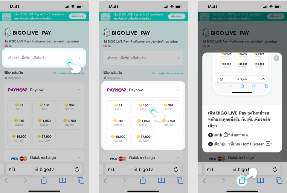 ได้เลยครับ นี่คือ ภาพรวมของแพ็คเกจและขั้นตอนการเติมเงินของแอป BIGO Live (หรือ “BIGO Live”) ที่สามารถนำไปใช้บนหน้าเว็บไซต์ได้: